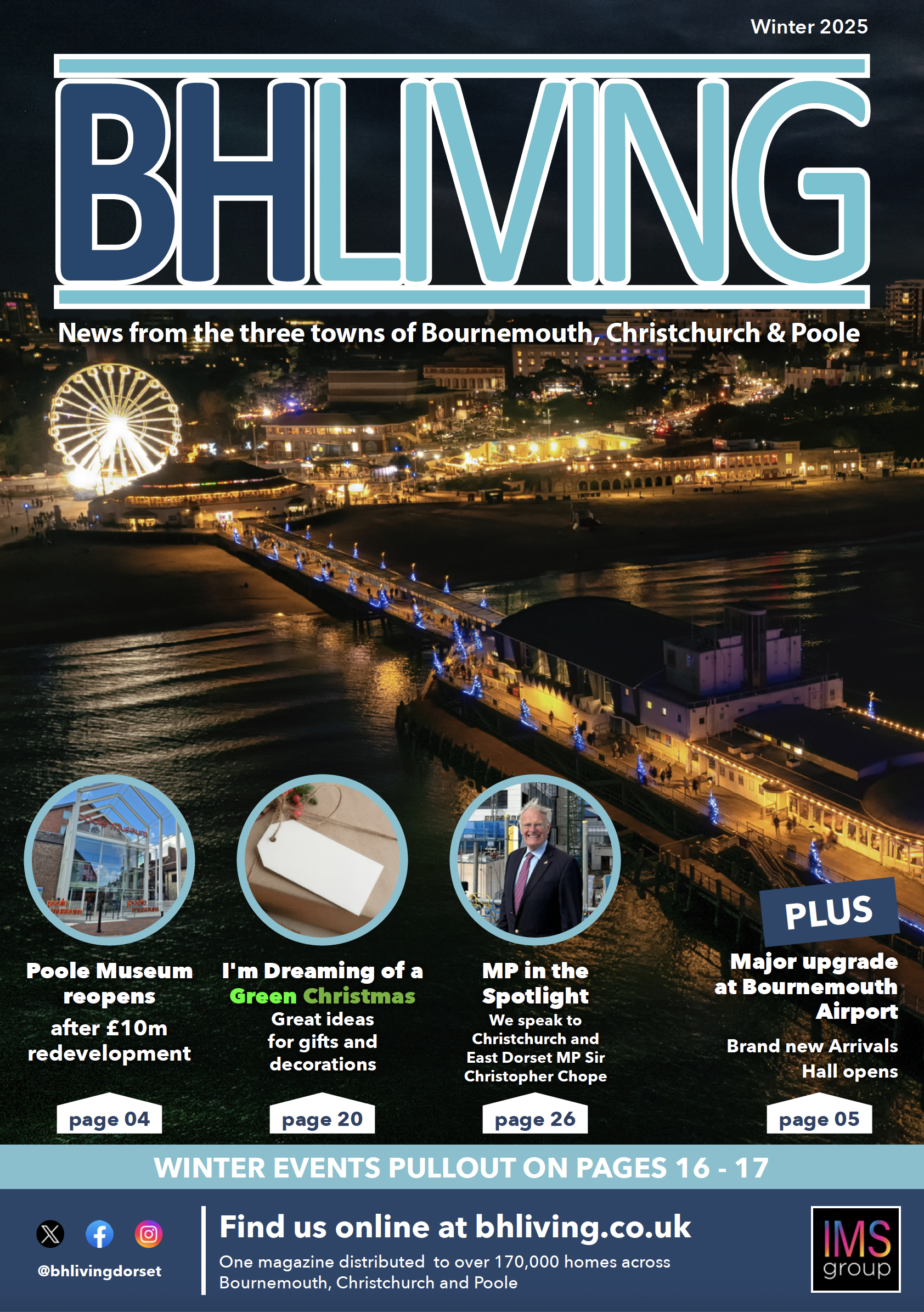 BH Living magazine is the South Coast’s premier residents magazine produced by IMS Group with co-operation from local councils and authorities delivered to over 170,000 homes in Bournemouth, Christchurch & Poole with pickup copies also distributed across the conurbation. The magazine is aimed at all householders and tenants living within the conurbation of Bournemouth, Poole & Christchurch (From BH1 to BH23) and contains regular features including: